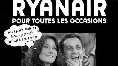 “The advertisement showed a cartoon bubble above Bruni, the scion of an Italian industrial dynasty, reading: ‘With Ryanair, my whole family can come to my wedding.'” That lawsuit brought Mr. Sarkozy a whopping one euro, but was more productive from Ms. Bruni, who was awarded 60,000 euros. (As an aside, my attorney readers will may be interested in the speed of the French legal system; the ad was published January 28, the suit was filed on January 30, and Ms. Bruni had the 60,000 euros in her hot little hands by February 5!)